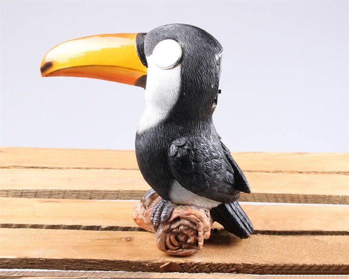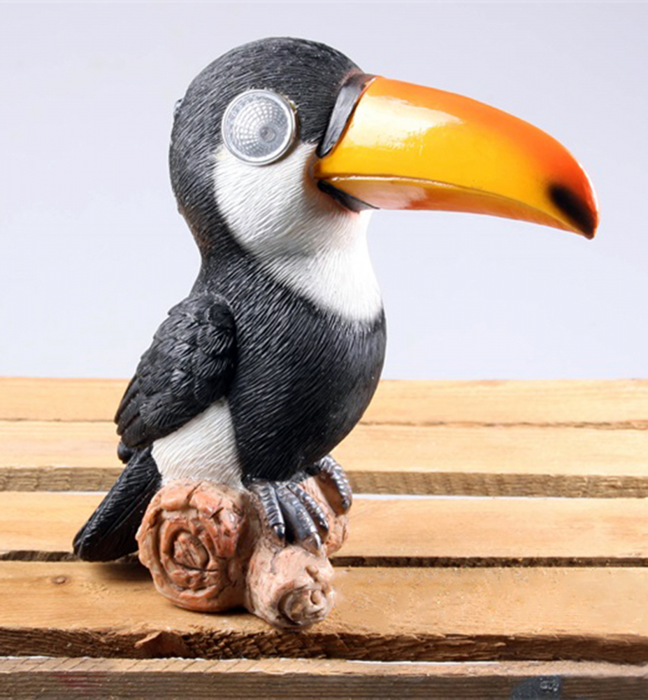 Solárne svietidlo v podobe tukana, ktorého oči tvoria 2 LED žiarovky.
