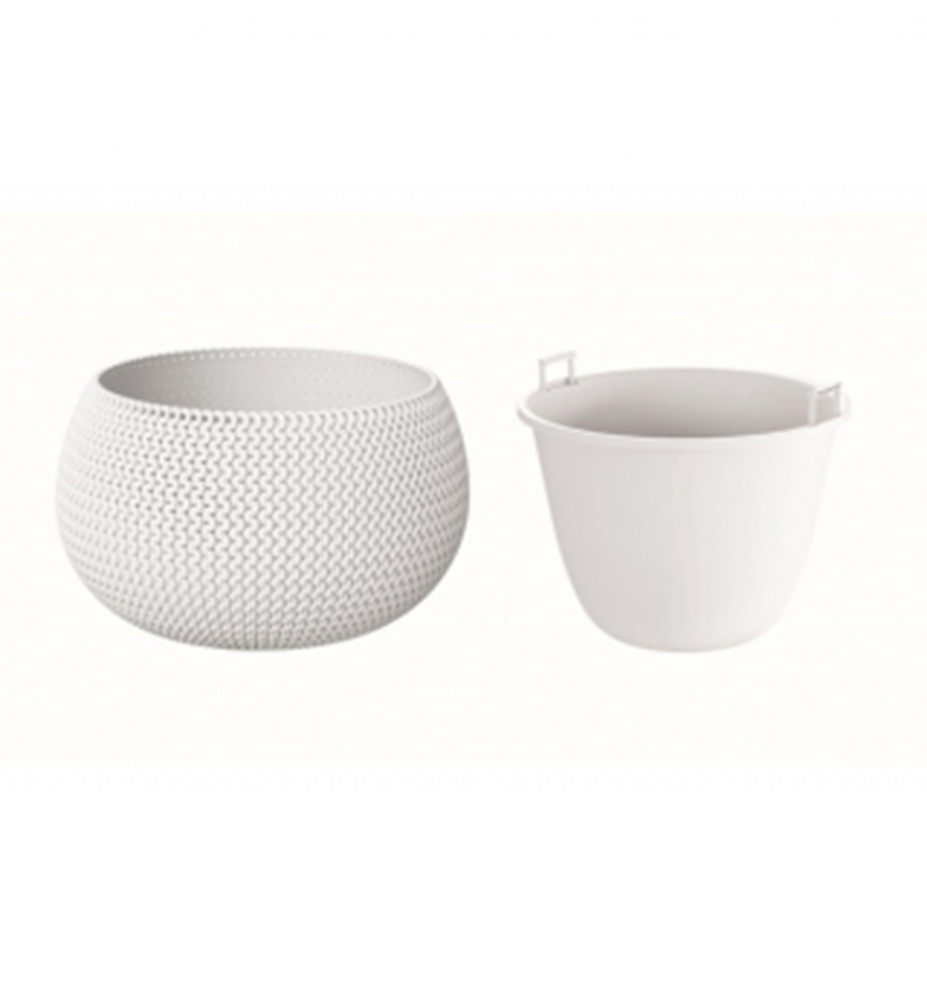 Plastový kvetináč s originálnym vzhľadom v bielej farbe.