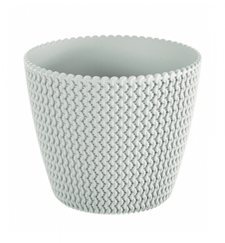 Štýlový plastový kvetináč s jedinečným zrnitým efektom vhodný do interiéru.