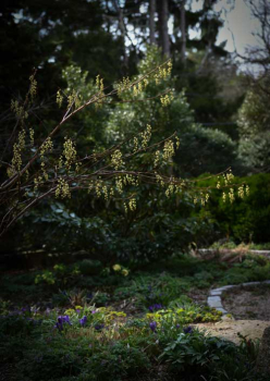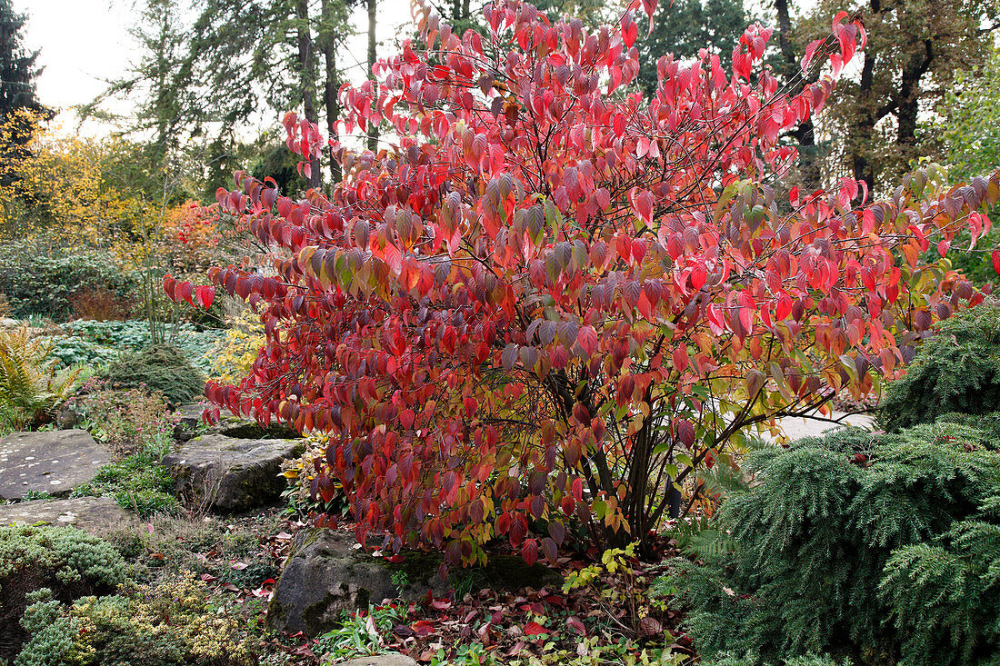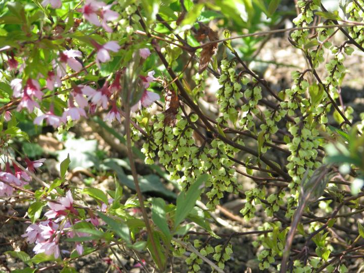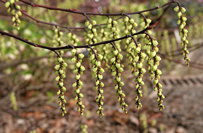 Mrazuvzdorná okrasná drevina s vínovočervenými listami a voňavými páperovitými kvetmi.