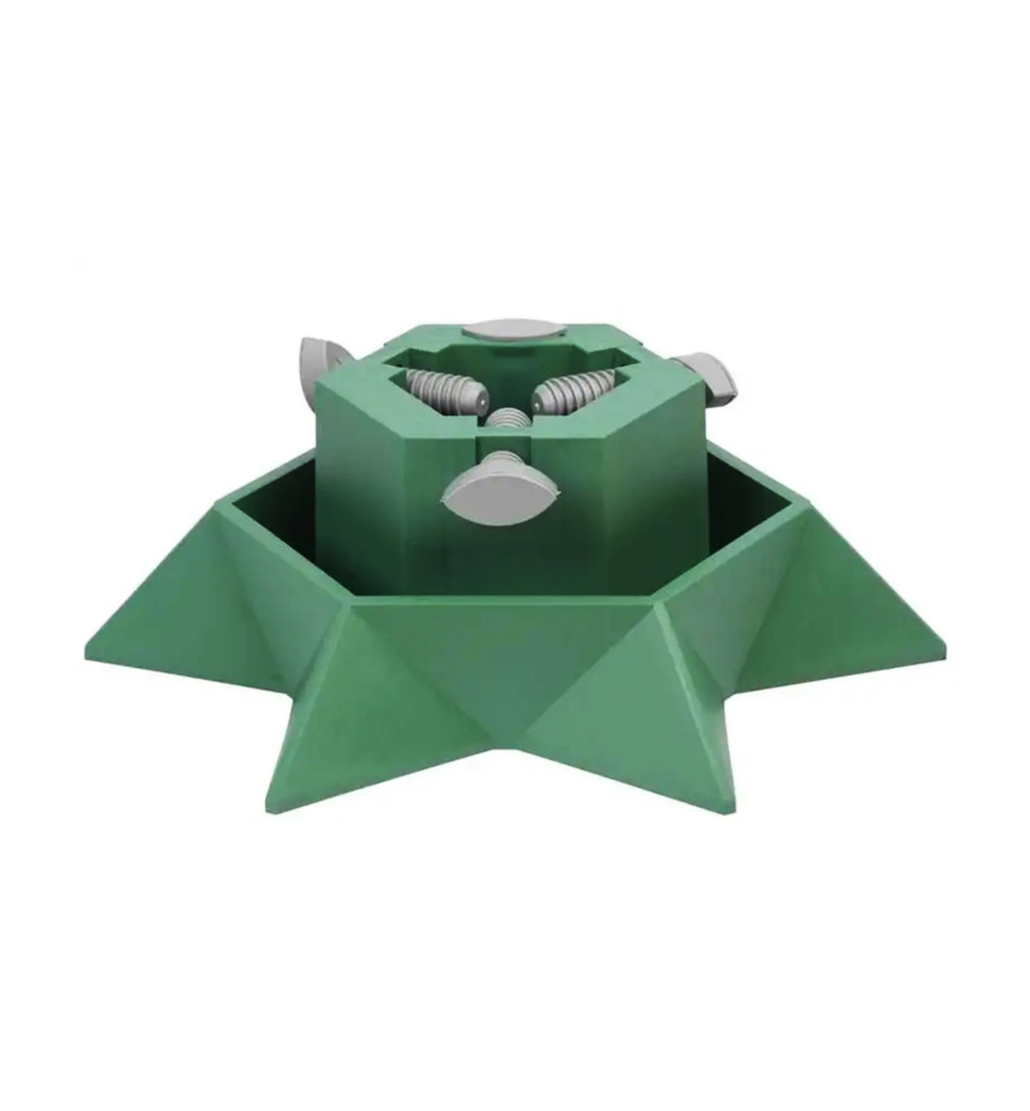 Pevný plastový stojan na vianočný stromček v zelenej farbe.