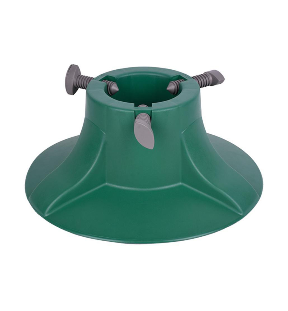 Pevný plastový stojan na vianočný stromček v zelenej farbe.