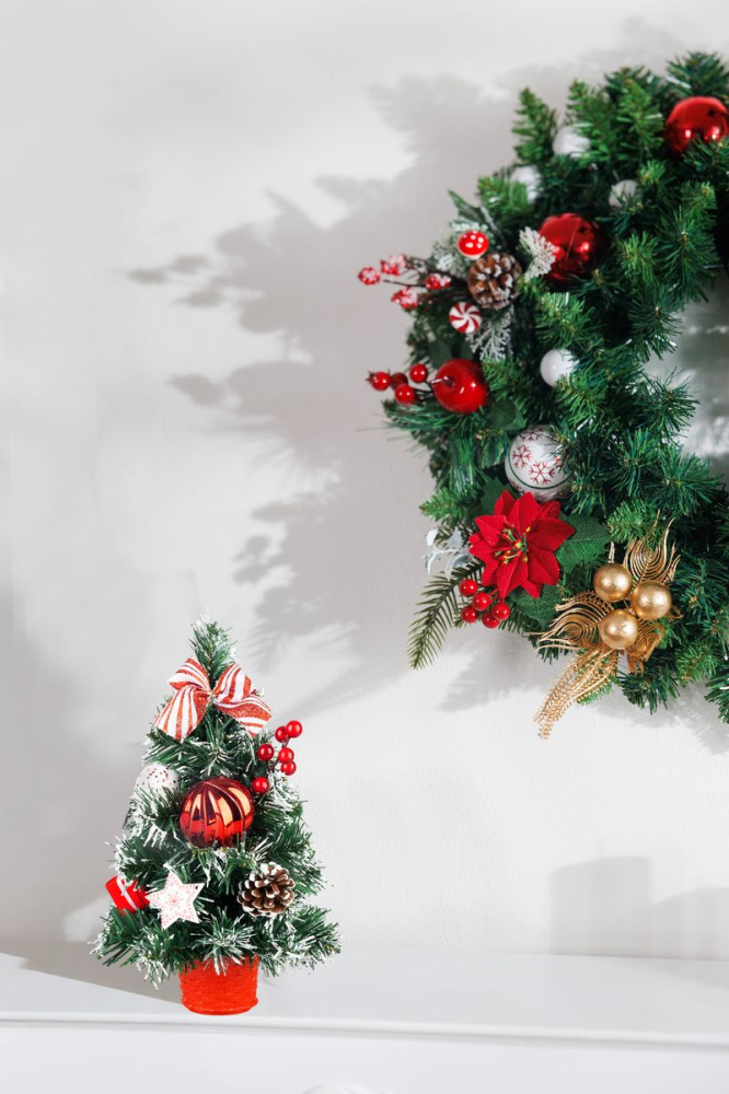 Vianočný dekorácia v podobe ozdobeného stromčeka.