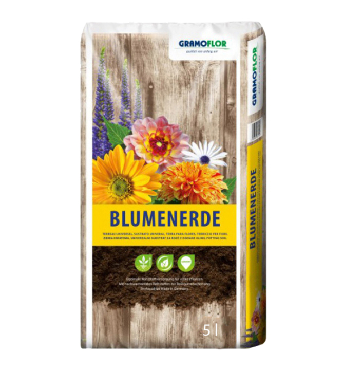 Univerzálny kvalitný nemecký substrát Blumenerde Gramoflor je substrát bez mušiek, vyrobený z geologicky starej rašeliny.