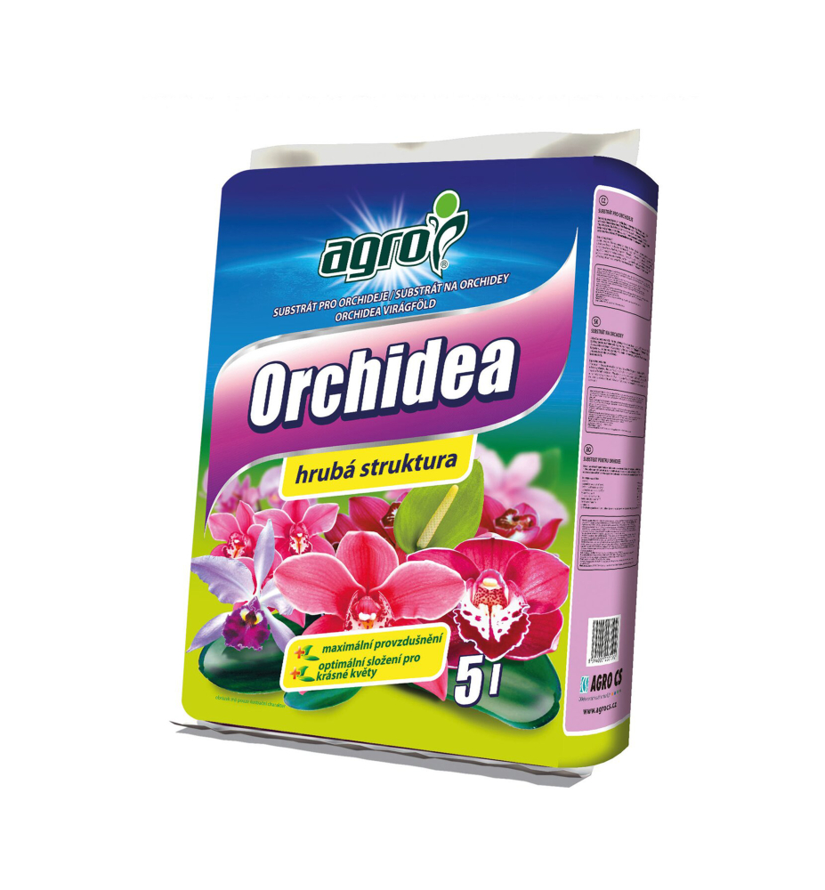 Charakteristika: Agro substrát pre orchidey výborne spĺňa nároky týchto rastlín najmä na vzdušnosť koreňového systému a vyrovnanú potrebu živín a stopových prvkov. Výsledkom je bujnejší a zdravší rast orchideí (Cattleya, Cymbidium, Phalaenopsis), bromélií (Tillandsia, Vriesea, Aechmea, Guzmania), antúrií a ostatných epifytických rastlín, teda rastlín s nízkou potrebou živín.
