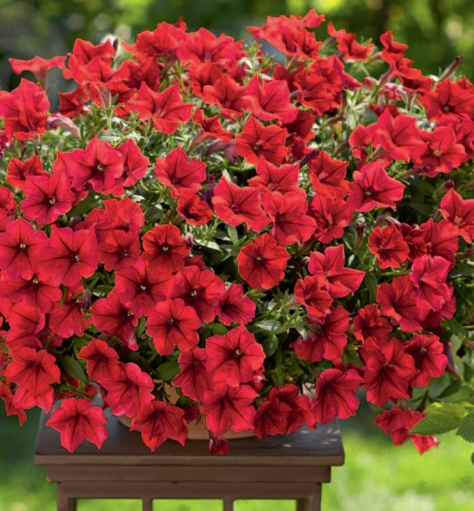 Charakteristika: Surfínia ´DEEP RED´ patrí medzi obľúbené letničky, ktoré rýchlo vytvoria bohato kvitnúce dekoratívne previsy. Tento kultivar sa vyznačuje pútavými veľkými červenými kvetmi s tmavším stredom. Tmavozelené listy sú pokryté jemnými chĺpkami a pod záplavou kvetov ich takmer vôbec nie je vidieť. Previslé surfínie vysádzame do závesných košov a do črepníkov na balkónoch a oknách.