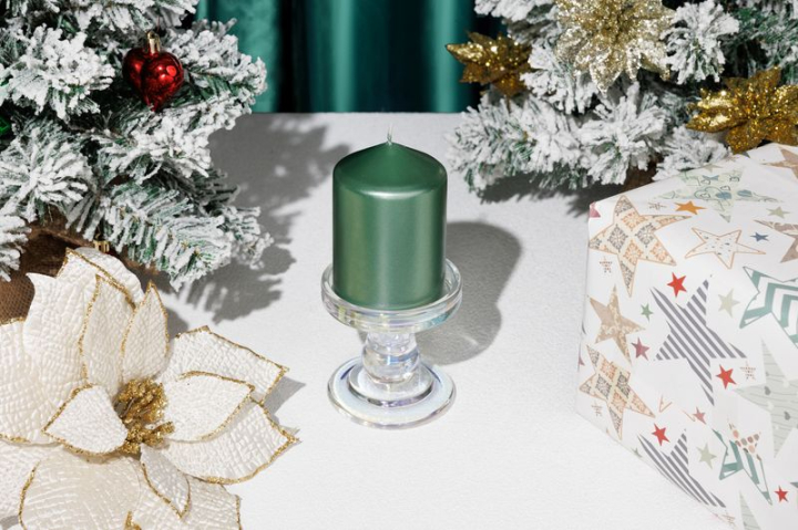 Charakteristika: Táto elegantná valcová sviečka s rozmermi 7x10 cm v sýtej zelenej farbe a s metalickým efektom je dokonalým doplnkom pre vašu vianočnú výzdobu. S dlhou dobou horenia až 35 hodín vám zaručí príjemnú atmosféru počas celých sviatkov.