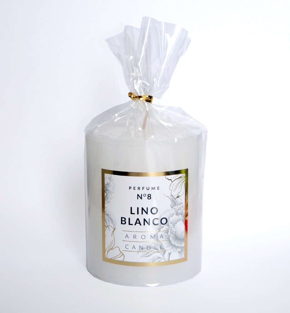Charakteristika: Čistá púdrová vôňa parafínovej sviečky v tvare valca prinesie do domova príjemné chvíle a zbaví pocitu preťaženosti a tlaku z pracovného dňa. Váš interiér sa skutočne premení na miesto, v ktorom sa i s Vašou návštevou a rodinou budete cítiť dokonale vďaka bielemu pižmu, koreňu kosatca, konvalinke. Lino blanco je skrátka vôňa pripomínajúca čistotu, mydlo a sviežu bielizeň. Rozmer: 7x8 cm.