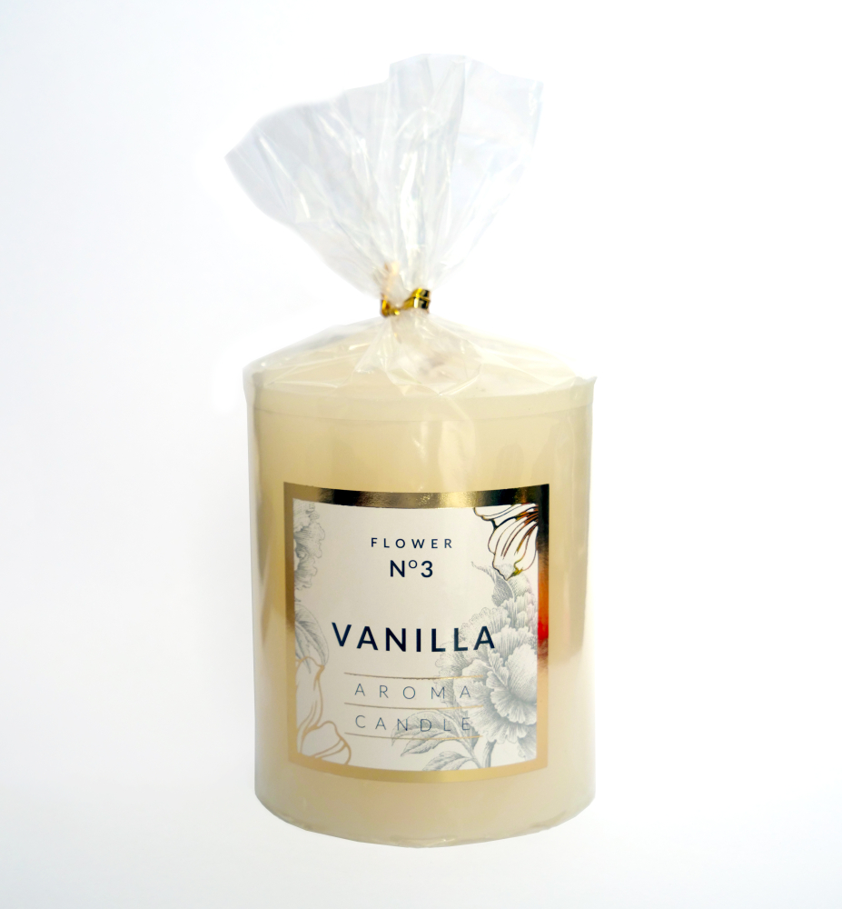 Parafínová sviečka v tvare valca s hrejivou sladkou vôňou vanilky.