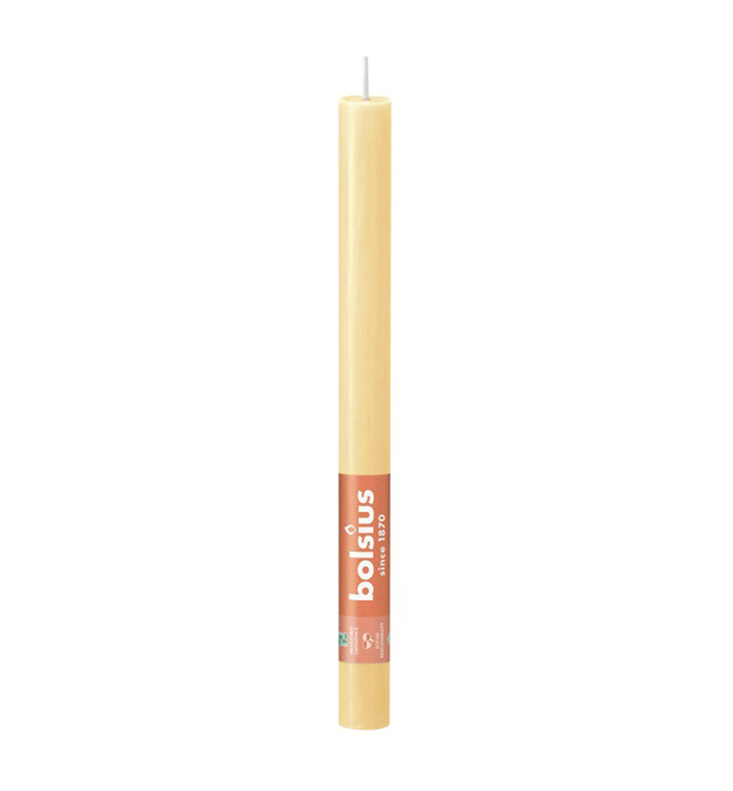 Kónická sviečka krémovej farby, krásny doplnok vášho domova.