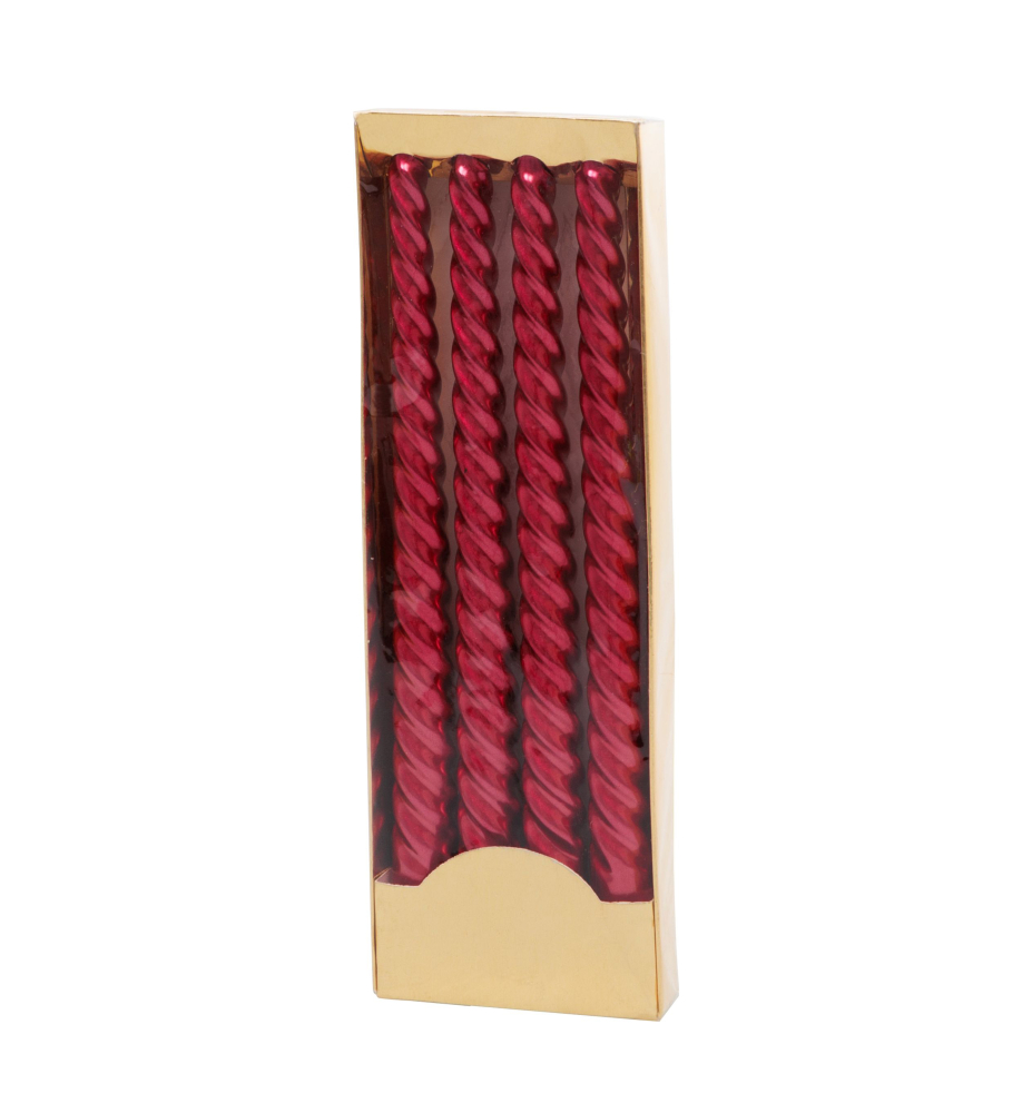 Charakteristika: Elegantné špirálové sviečky v červenej farbe majú klasickú výšku 25 cm, vďaka čomu sú ideálne pre rôzne sviatočné dekorácie. Balenie obsahuje 4 kusy týchto točených sviečok, ktoré pridajú vášmu interiéru nádych luxusu a pokoja. S dobou horenia až 4 hodiny sa perfektne hodia na slávnostné stolovanie alebo adventné vence.