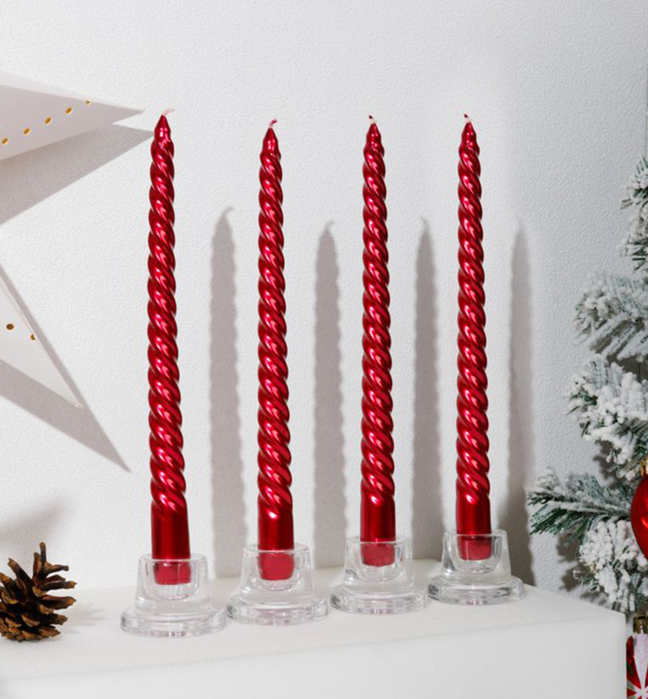 Sviečka MAGICHOME VIANOCE, 25 cm, bal. 4 ks, červená, špirálová, točená