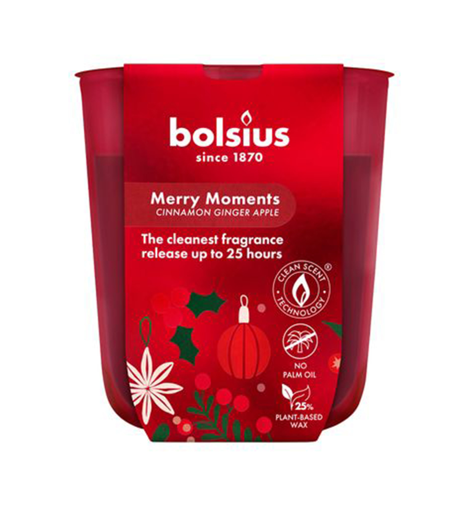 Charakteristika: Vianočná sviečka Bolsius v skle s rozmermi 80x73 mm prinesie do vášho domova príjemnú a útulnú atmosféru. Kombinácia vôní sladkého jablka a hrejivej škorice vytvára ideálnu sviatočnú arómu, ktorá navodí tú správnu náladu počas zimných večerov. Sviečka je vyrobená z kvalitného vosku s 25 % podielom rastlinných zložiek a neobsahuje palmový olej, čo ju robí ekologickejšou voľbou. Vďaka technológii Clean Scent poskytuje čisté a rovnomerné horenie až do 25 hodín.