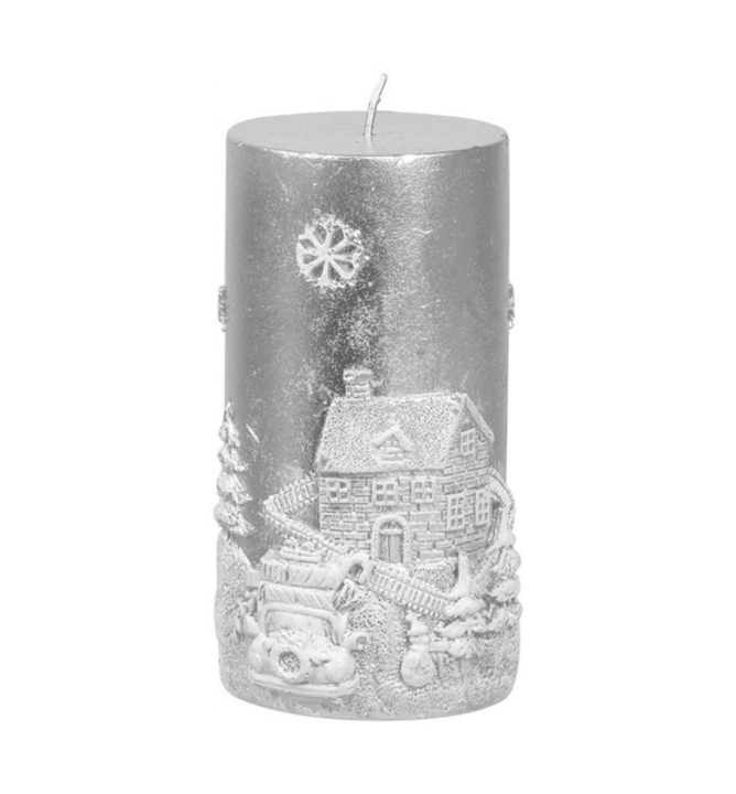 Sviečka VIANOCE, 7x12,5 cm, strieborná, s krajinkou