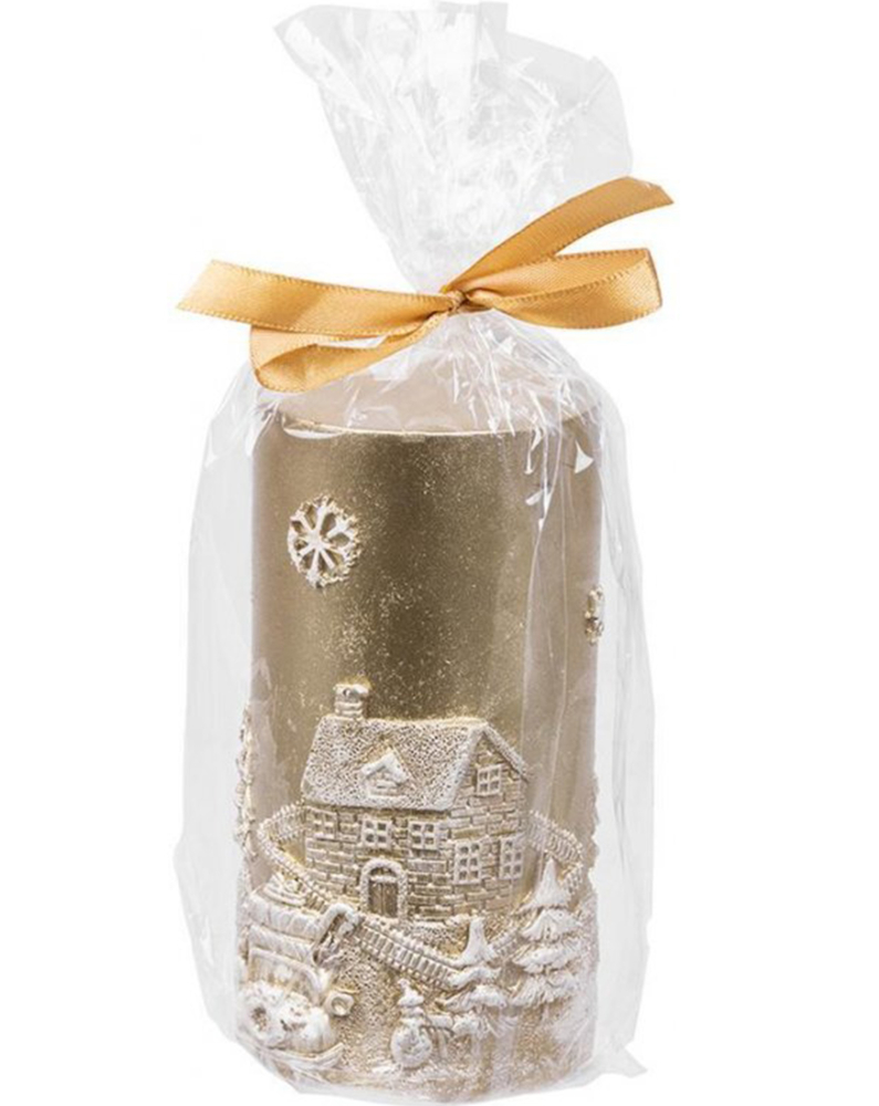 Sviečka VIANOCE, 7x12,5 cm, zlatá s krajinkou