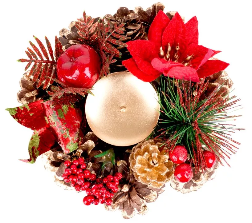Charakteristika: Svietnik MagicHome by nemal chýbať vo výbave vášho interiéru počas vianočných sviatkov. Je to vkusný, prírodný svietnik s čečinou a kvetom. Jeho priemer je 15 cm.