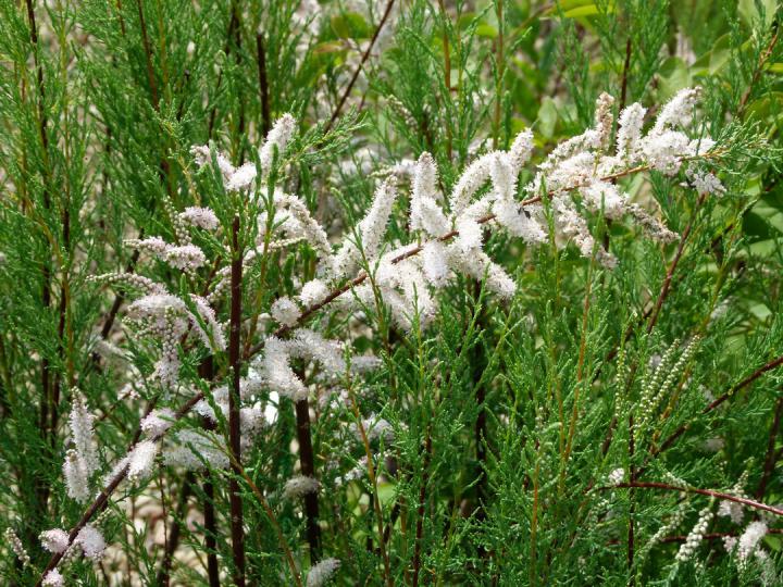 Vždyzelený kompaktný ker s dvojfarebnými listami a bielymi kvetmi.