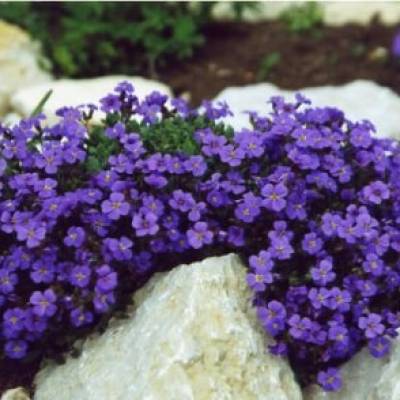 Rýchlo rastúca pôdopokryná trvalka s množstvom modrých kvetov.