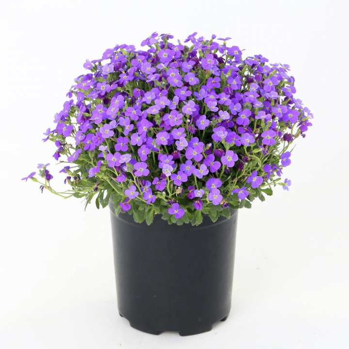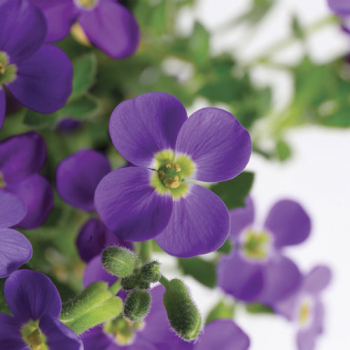 Dlho kvitnúca trvalka s bielymi kvetmi s fialovou žilnatinou a pôdopokryvným vzrastom.