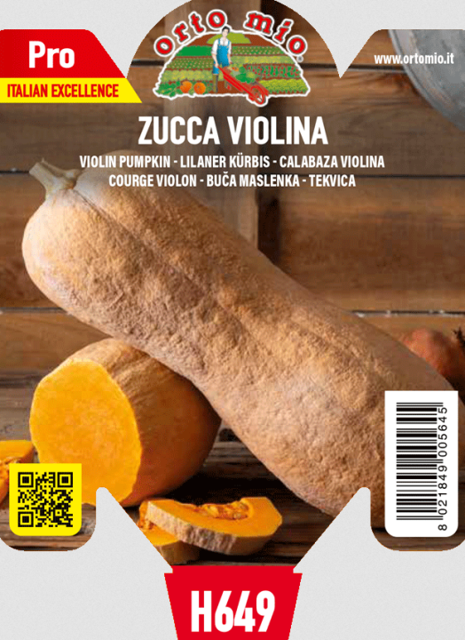 Charakteristika: Tekvica ´VIOLINA´ je tradičný kultivar pestovaný hlavne v okolí Ferrary. Názov má podľa tvaru plodu, ktorý je veľmi podobný husliam. Jeho hlavnou charakteristikou sú podlhovasté plody so zvrásnenou žltoorieškovou šupkou a oranžovou maslovou dužinou. Môžu vážiť približne 4 kg. Majú skvelú chuť, vďaka čomu sa využívajú na prípravu krémových polievok, na pečenie, grilovanie, rizotá a dezerty.
