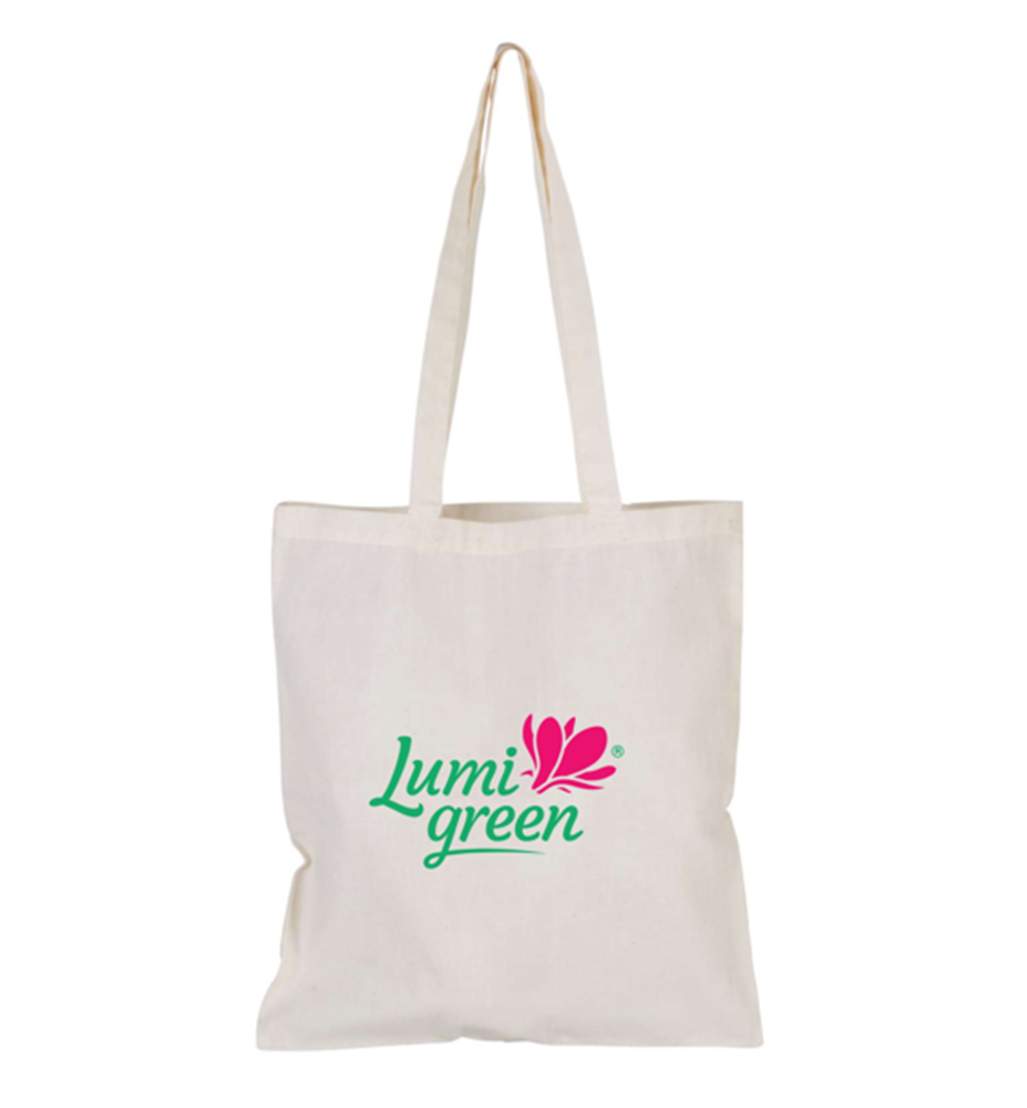 Textilná taška s logom Lumigreen v krémovej farbe.