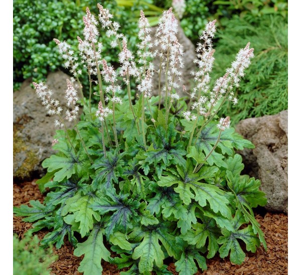 Najpopulárnejšia odroda tiarely s krásnymi zelenými listami a bieloružovými kvetmi.