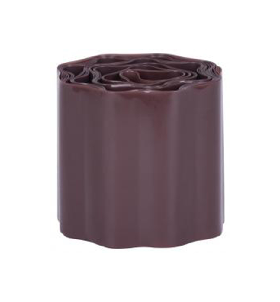 Hnedá plastová vlnitá obruba umožňuje izoláciu kvetinových záhonov.