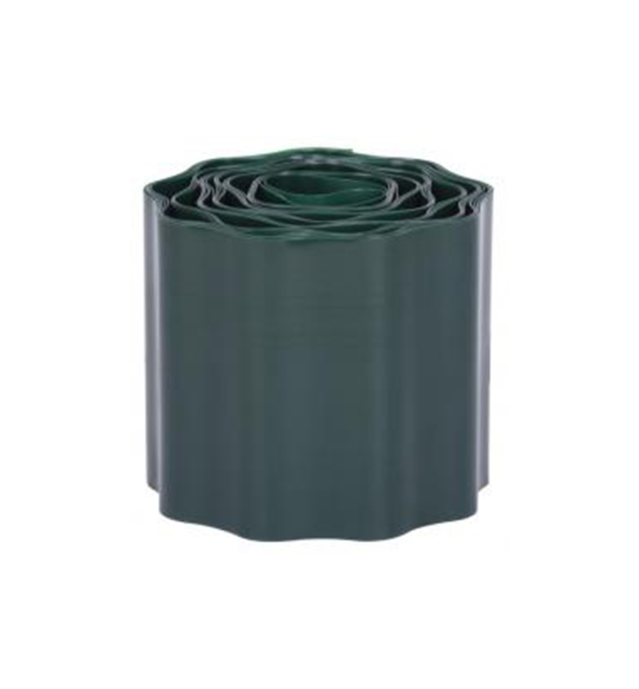 Zelený plastový obrubník jednoducho oddelí trávnatú plochu od záhona.