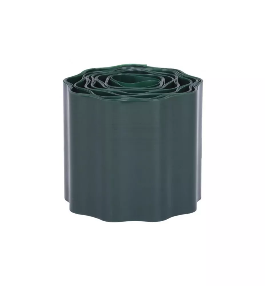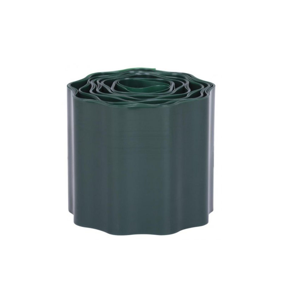 Zelená plastová vlnitá obruba umožňuje izoláciu kvetinových záhonov.