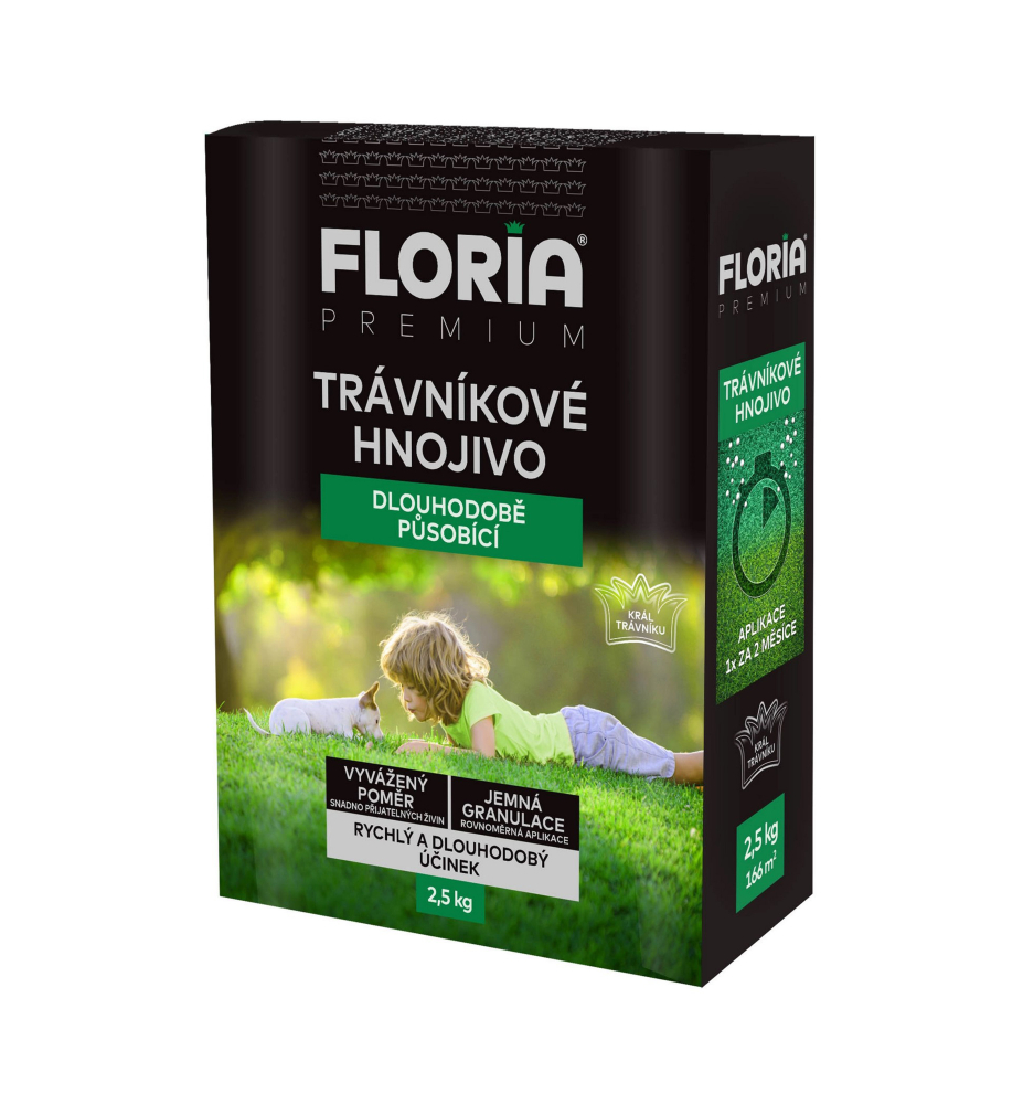 - Trávnikové hnojivo FLORIA dlhodobo pôsobiace, 2,5 kg