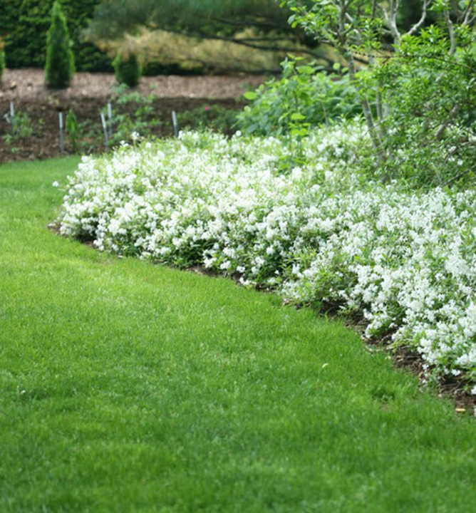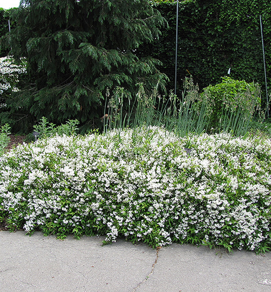 Obľúbený nižší okrasný ker s množstvom snehobielych kvetov, vhodný aj na živý plot.