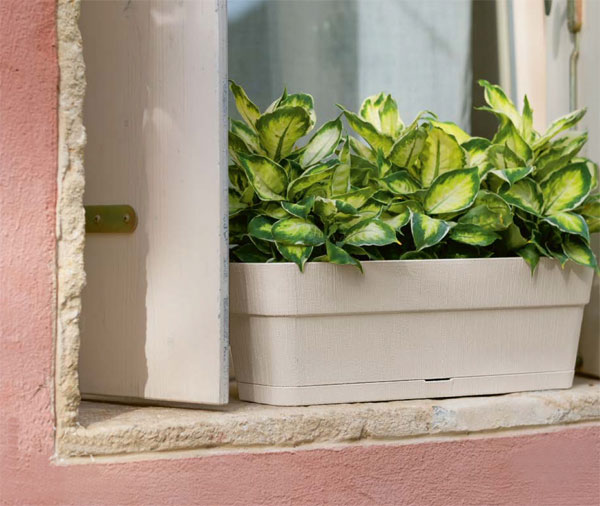 Kvalitný samozavlažovací plastový truhlík na kvety a bylinky.