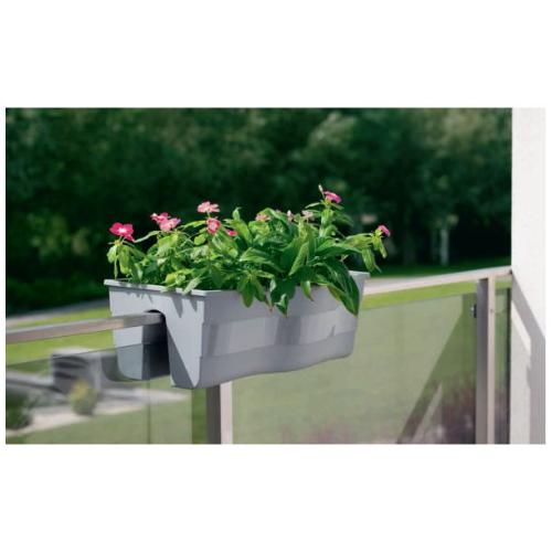 Charakteristika: Plastový truhlík so špeciálnou úpravou, ktorá umožní jednoduché zasunutie kvetináča na zábradlie balkónov a terasy. Nepodlieha nepriaznivému vplyvu slnečného žiarenia a zachováva si svoju prirodzenú farbu. Je odolný voči mechanickému poškodeniu. Súčasťou kvetináča sú 2 nastaviteľné upevňovacie (centrovacie) kolíky pre lepšiu stabilitu pri umiestnení napr. na zábradlí. Truhlík je určený na zábradlie o šírke 6-8 cm.