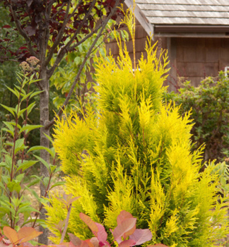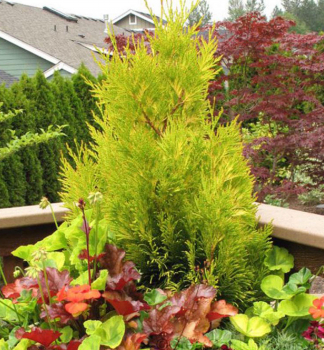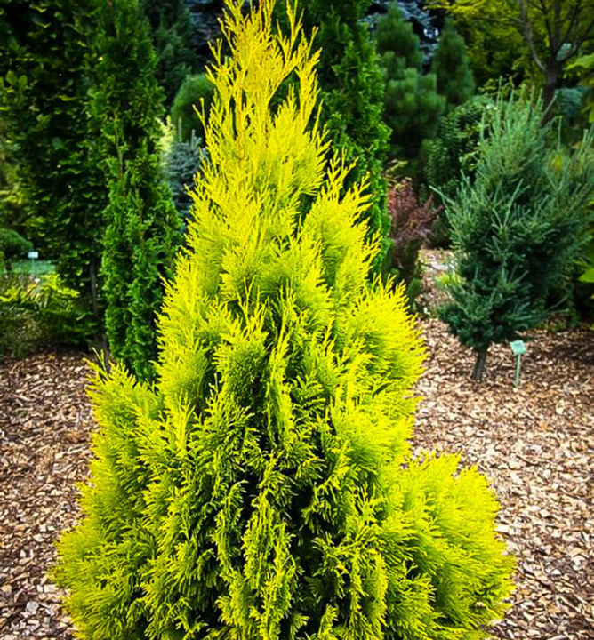 Rýchlorastúci cyprusovec so zlatistými výhonmi, vhodný na živý plot.
