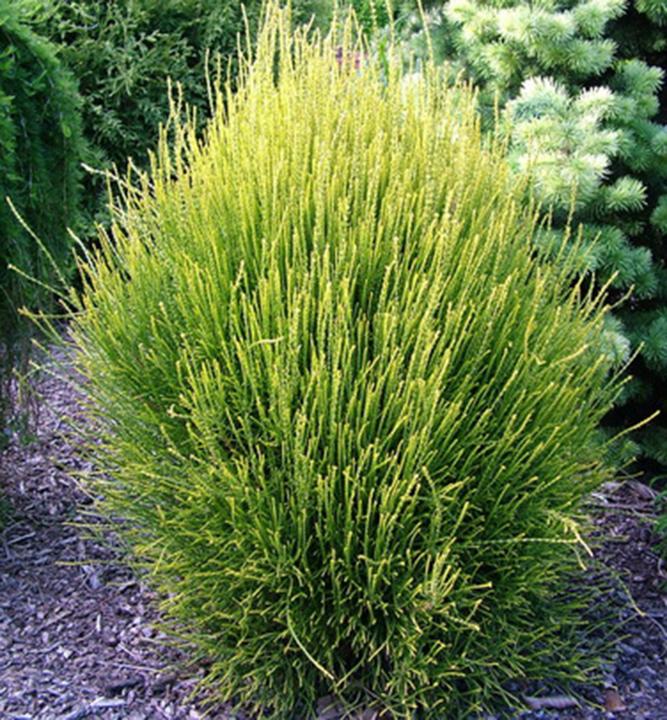 Mimoriadne dekoratívna, pomaly rastúca trpasličia tuja s jemnými mäkkými ihlicami.