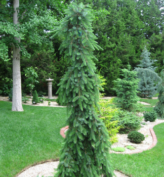 Pomaly rastúci ihličnan s úzkym tvarom a efektne previsnutými výhonmi.