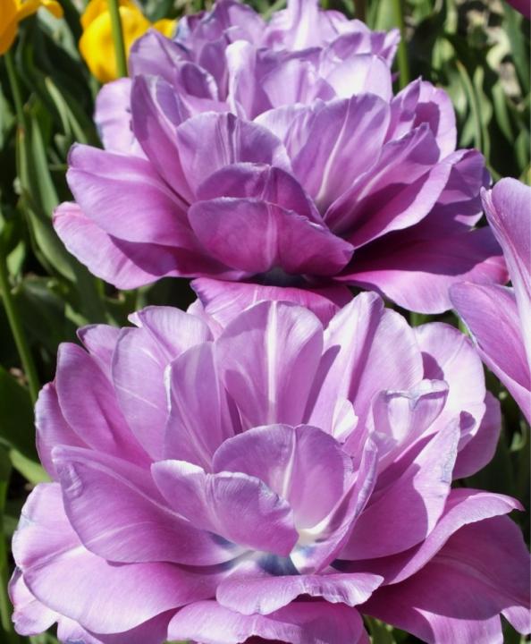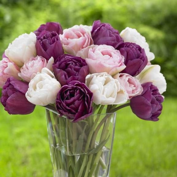 Charakteristika: Tulipán ´BLUE SPECTACTLE´ je prekrásny kultivar, ktorého kvety sú zložené z množstva lupeňov a nápadne pripomínajú kvety pivónie. Voňavé kvety majú výraznú fialovú farbu, sú vhodné k rezu do jarných kytíc. Rastú na dlhých vzpriamených alebo mierne zvlenených stonkách do výšky až 50 cm.