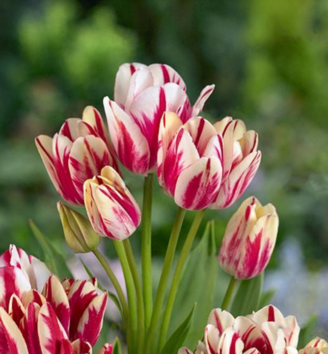 Charakteristika: Tulipán ´FLAMING CLUB´ je zaujímavý vďaka krémovobielym kvetom s nepravideľným červeným sfarbením. Tento kultivar sa odlišuje od ostatných tým, že jeho silné stonky sú zakončené zhlukom piatich alebo aj viacerých kvetov rôznych veľkostí. Prirodzene tak vytvára v záhradách malé kytice. Dorastá do výšky 50 cm. Vynikne v každom záhone, ale je vhodný aj k rezu.