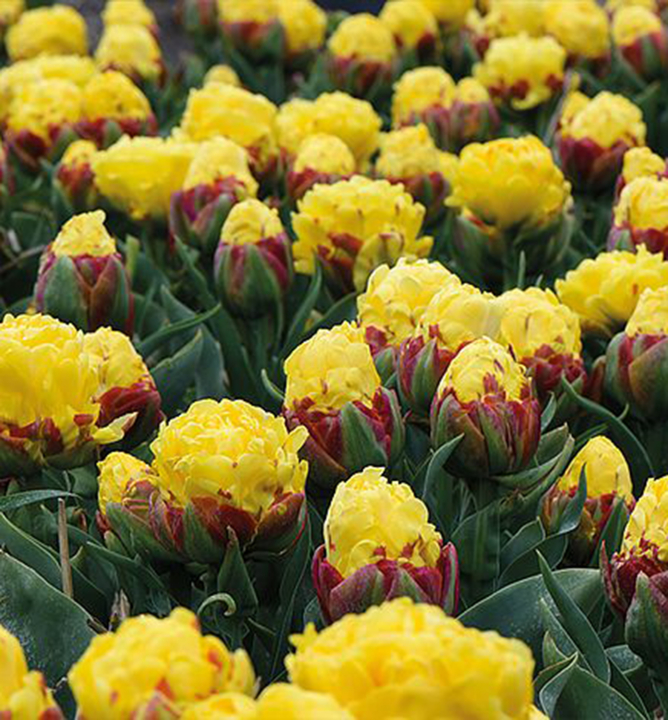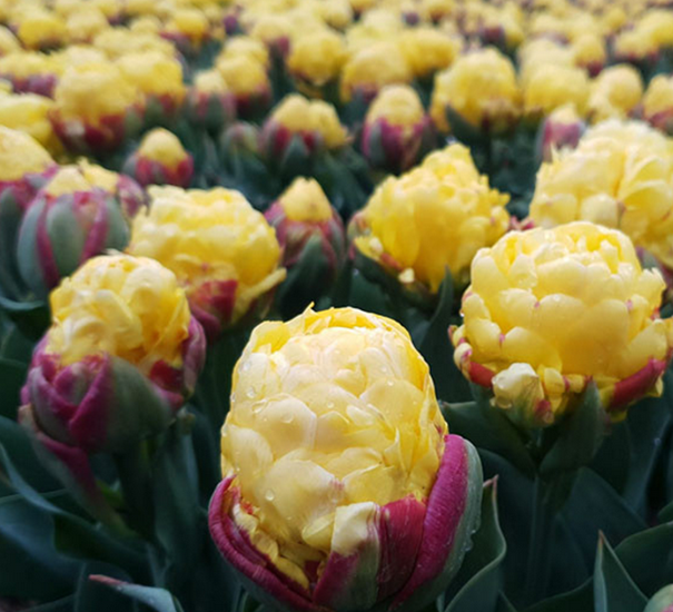 Netradičný dvojfarebný plnokvetý tulipán pripomínajúci banánovú zmrzlinu.