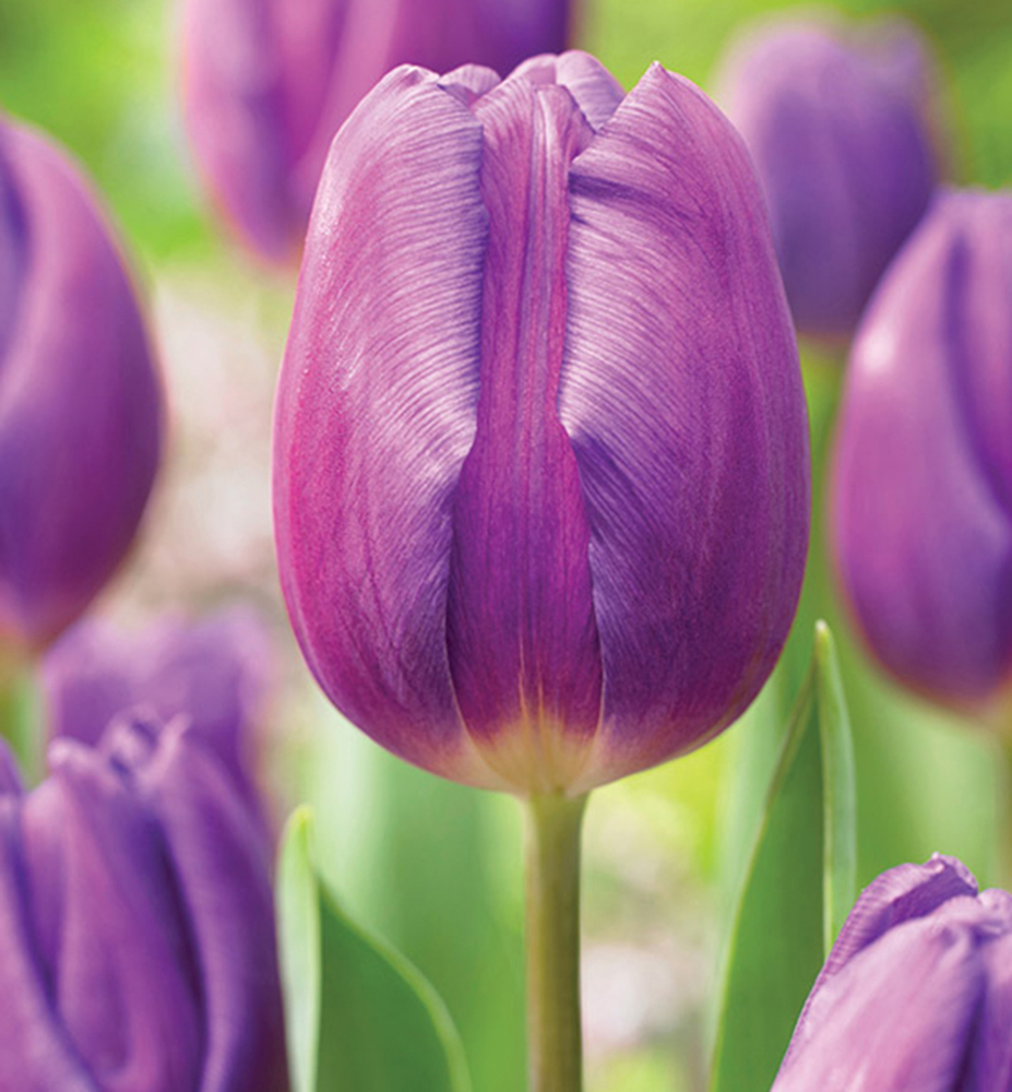 Charakteristika: Výrazný fialovo purpurový tulipán ´PURPLE FLAG´ má jednoduchý kalichový tvar kvetu, z vačšej časti uzavretý. Kvitne v apríli až v máji na dlhých robustných stonkách do výšky 40 - 50 cm. Je vhodný aj k rezu do jarných kytic.
