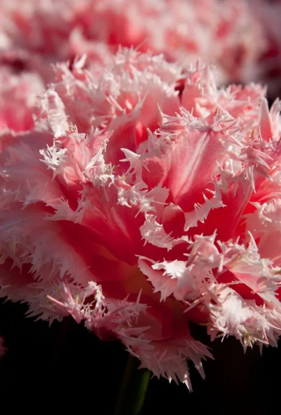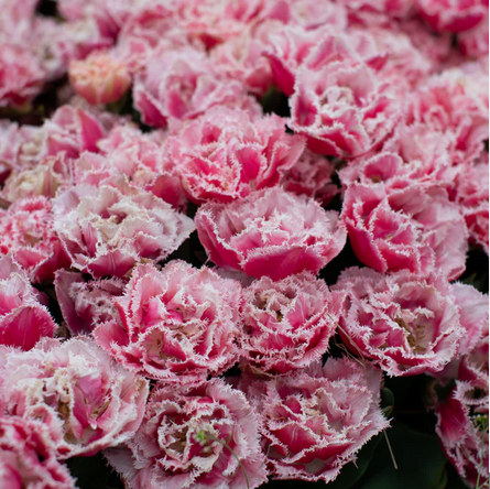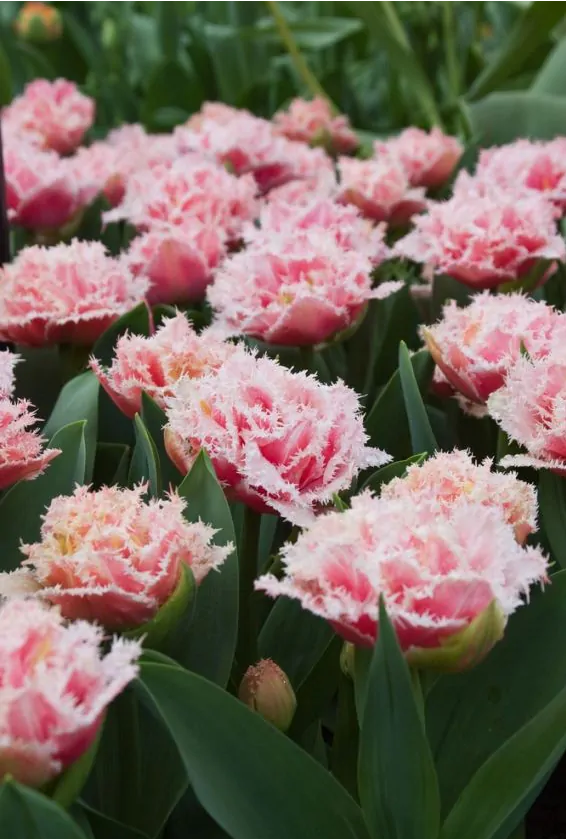 TOP NOVINKA! Veľmi dekoratívny plnokvetý tulipán ružovej farby s bielymi okrajmi lupeňov.