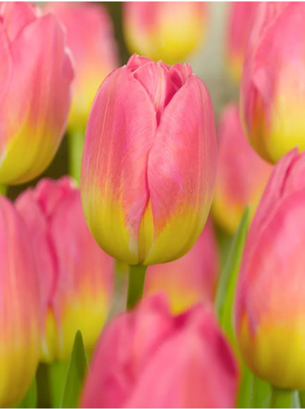 Charakteristika: Tulipán ´TOM POUCE´ je mimoriadne pôvabný kultivar pomenovaný po lahodnom holandskom zákusku. Kombinuje jemnosť pastelovej ružovej s teplým citrónovožltým odtieňom na okvetných lístkoch. Kvety majú klasický, štíhly tvar a dosahujú výšku 40 - 60 cm. Výborne sa kombinuje s jemne žltými narcismi, s ktorými vytvára harmonickú jarnú kompozíciu.