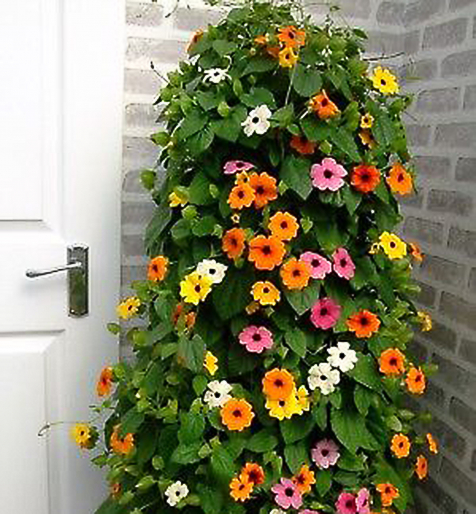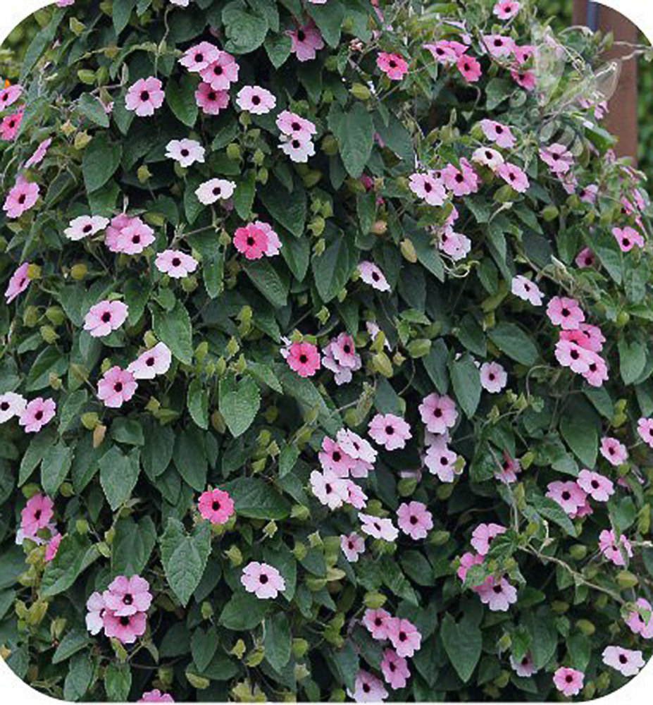 Charakteristika: Tunbergia ´SUNNY SUSY® ROSE SENSATION´ je obľúbená letnička, ktorá tvorí unikátne kvetinové steny alebo previsy v závesných kvetináčoch. Vytvára dlhé plazivé stonky, ktoré môžu mať dĺžku až 2 m. Prekrásne ružové kvety majú čierny stred, vďaka čomu sa táto rastlina ľudovo nazýva " Čiernooká Zuzana".