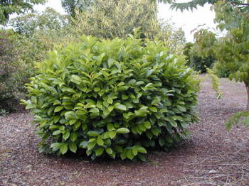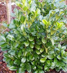 Vždyzelený kompaktný ker s dvojfarebnými listami a bielymi kvetmi.