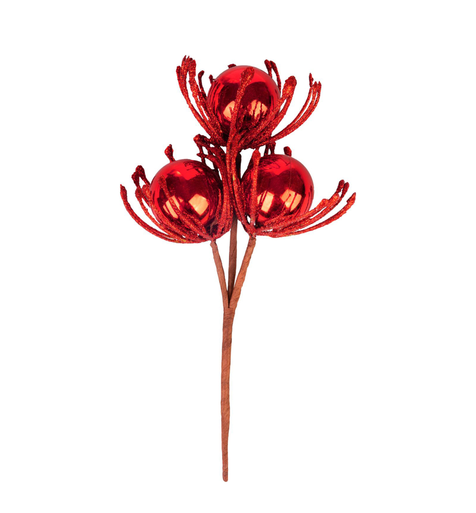 Charakteristika: Vianočná dekorácia vetvička v červenom prevedení dotvorí čarokrásnu atmosféru Vianoc vo vašom domove. Táto dekorácia je zdobená lesklými guľami, ktoré dodajú vašim aranžmánom jedinečný a žiarivý vzhľad. Vetvička je ideálnym doplnkom na vianočný stromček, do váz, vencov alebo stolových aranžmánov. Vďaka výraznej červenej farbe dokonale ladí s tradičnými vianočnými ozdobami Výška je 22 cm.