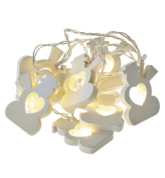 - Vianočná reťaz SNEHULIAK drevený, 1,35 m, 10 LED, teplá biela, časovač