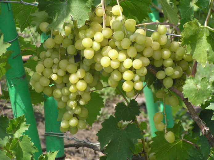 Stredne skorá stolová odroda bieleho viniča s veľkými bobuľami.