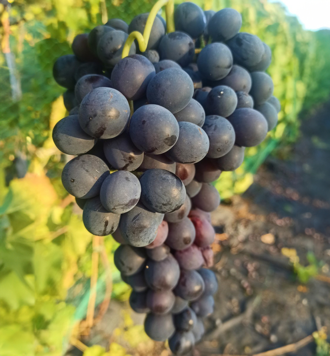 Skorá a rezistentná stolová odroda s veľkými svetloružovými až červenými bobuľami.