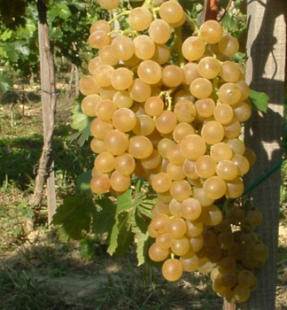 Stredne skorá stolová odroda bieleho viniča s veľkými bobuľami.