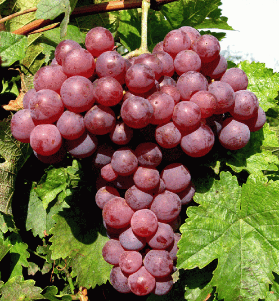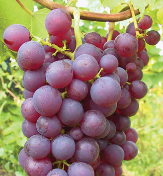 Rezistentný stolový vinič s tmavoružovými plodmi a skorou rodivosťou.